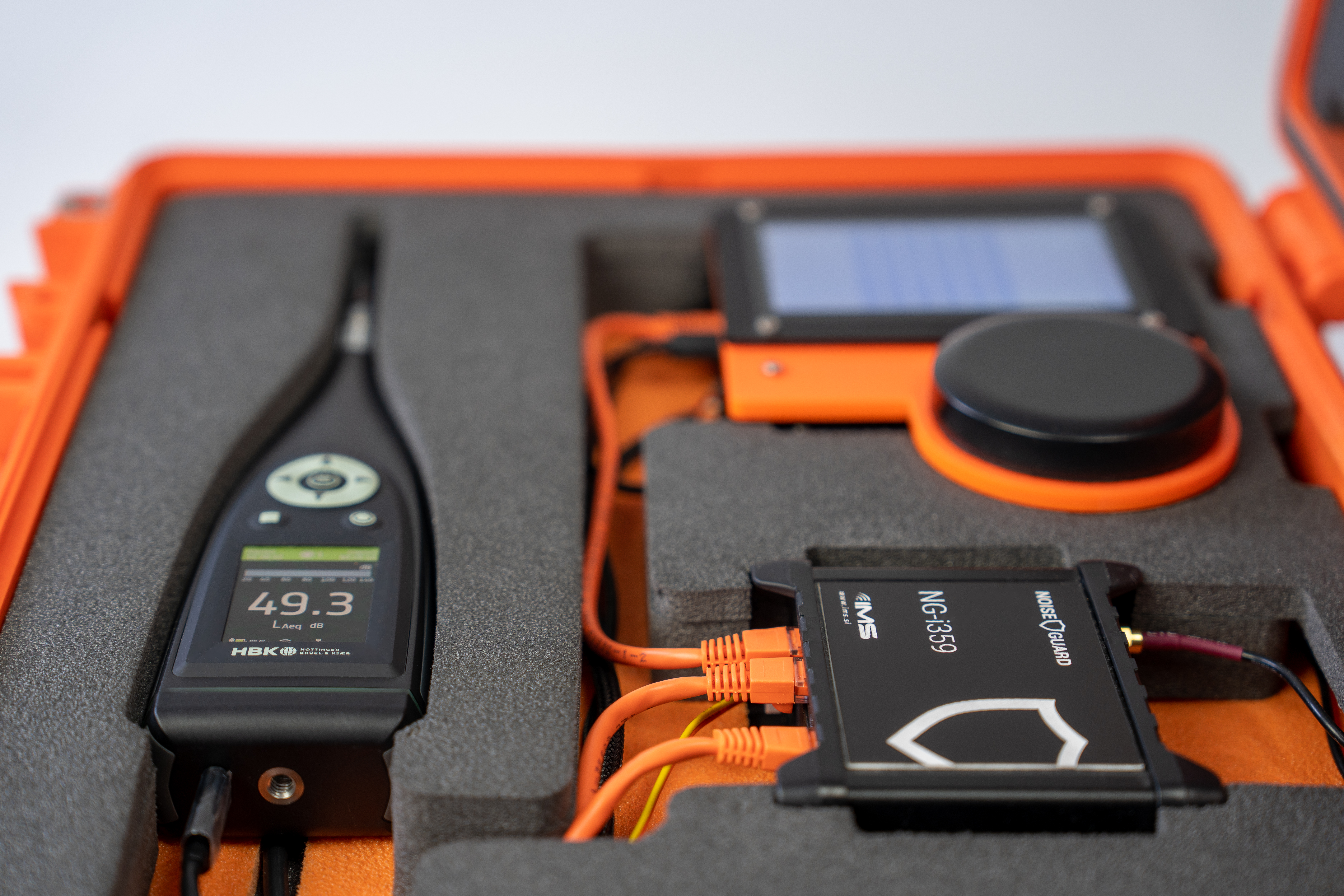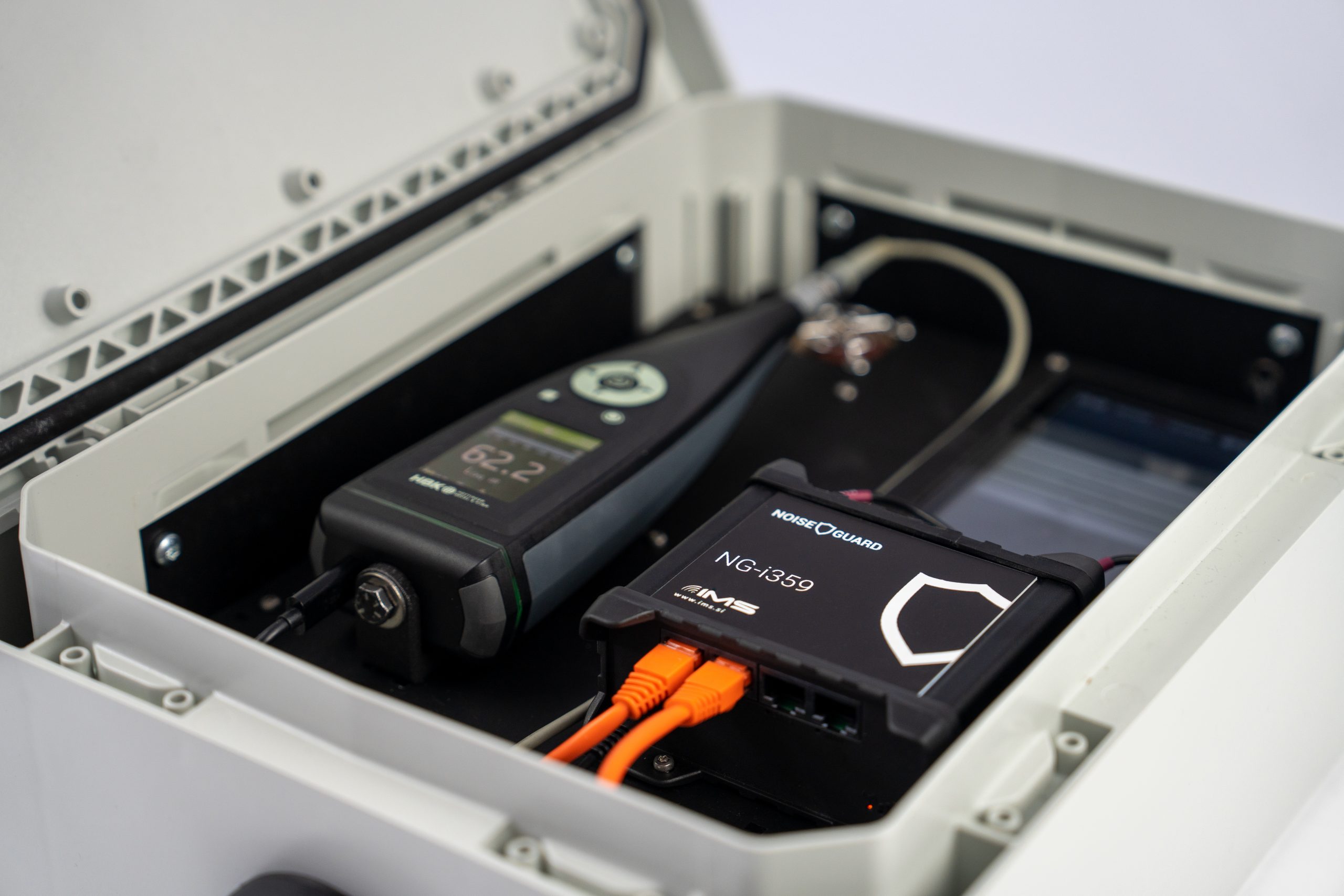 Portable noise monitoring is provided with a portable unit. This is functionally equivalent to the stationary version, but housed in a hand-carried waterproof case, suitable for monitoring periods of several months at a time. Also equipped with a 4G digital router, the portable unit communicates noise data in real time to the Noise Guard server for storage and analysis.